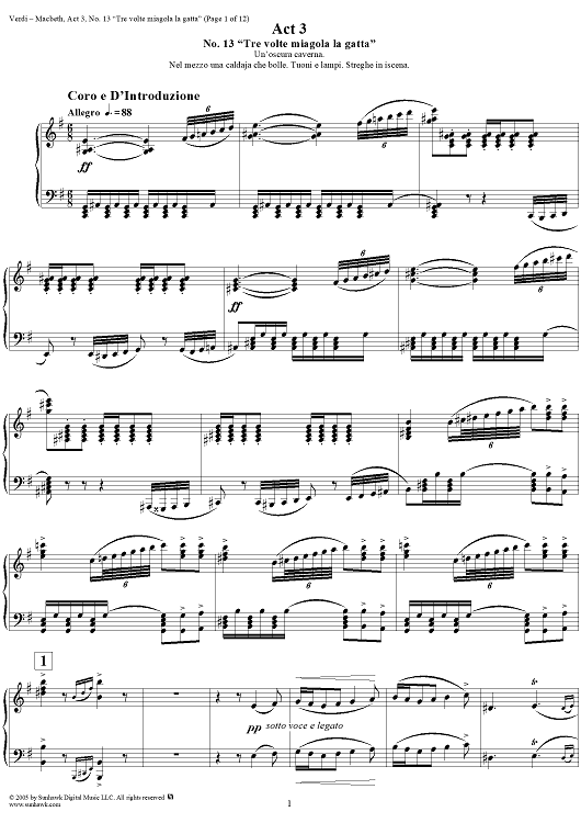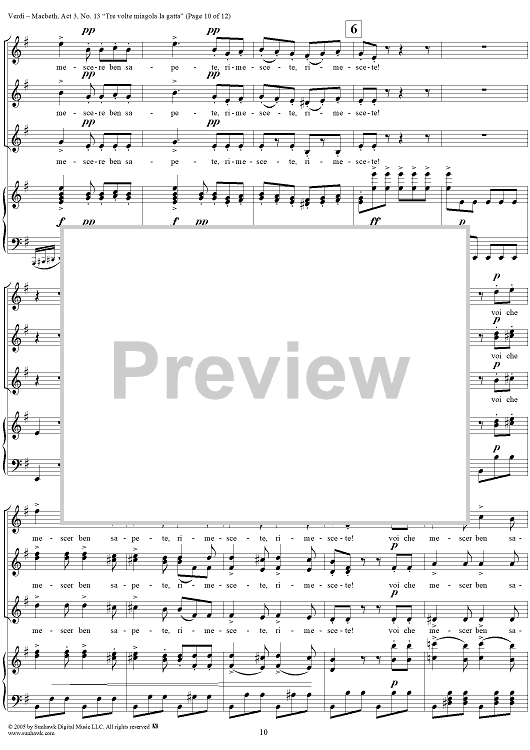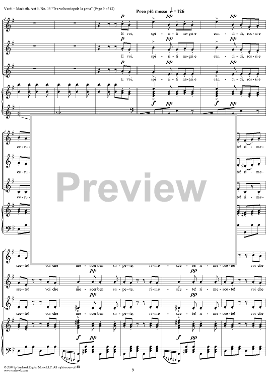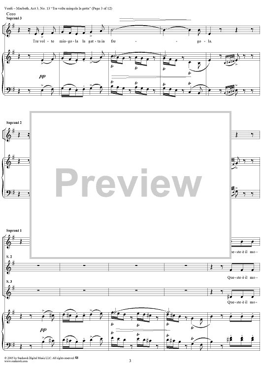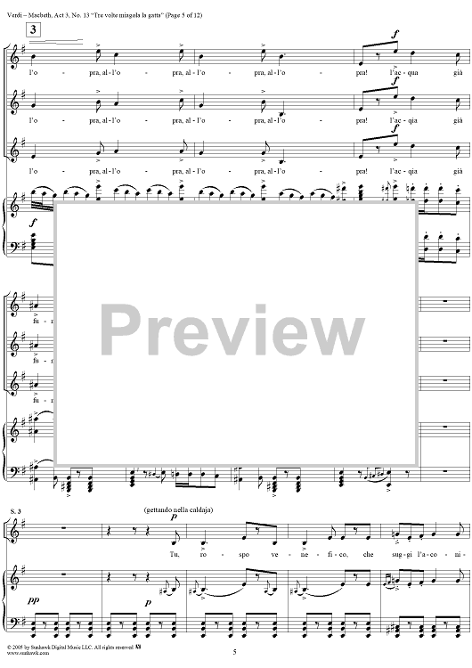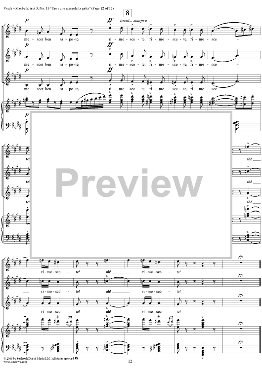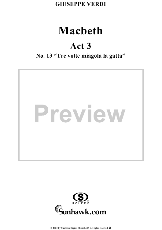"Macbeth, Act 3, No. 13, Choir. "Tre volte miagola la gatta"" Sheet Music by Giuseppe Verdi