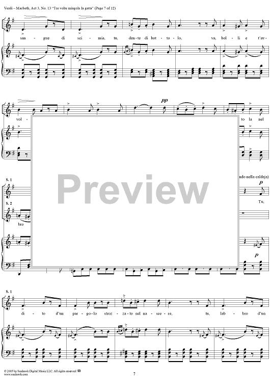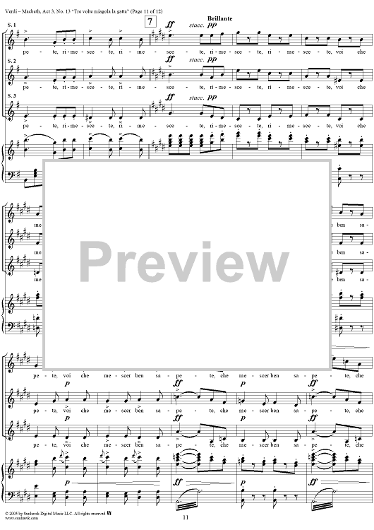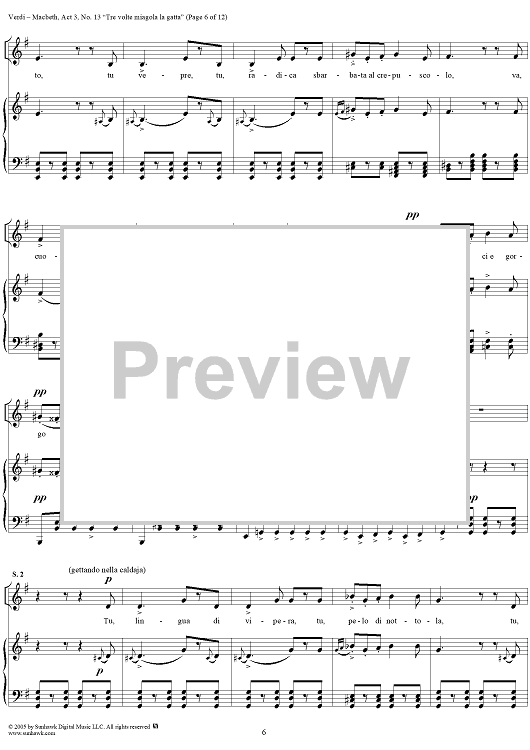 Digital Sheet Music for Macbeth, Act 3, No. 13, Choir. "Tre volte miagola la gatta" by Giuseppe Verdi scored for Vocal Score; id:304519