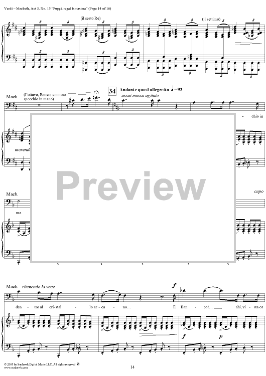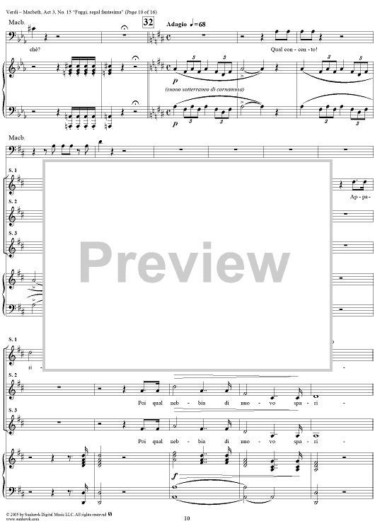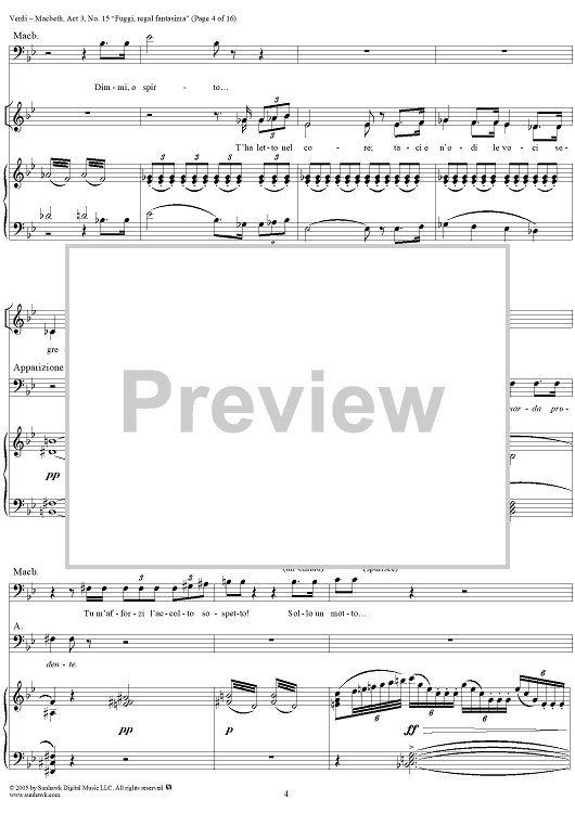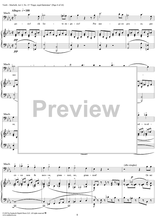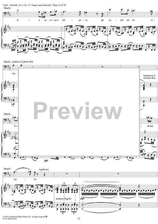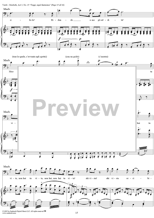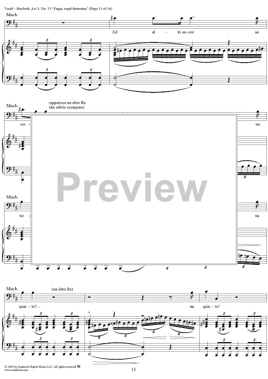 Digital Sheet Music for Macbeth, Act 3, No. 15, Scena. "Fuggi, regal fantasima" by Giuseppe Verdi scored for Vocal Score; id:304521