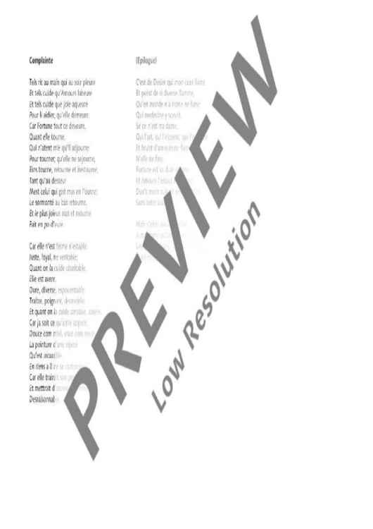 In Heinz Holliger's works, the succinct term 'transcriptions' conceals multi-layered variants of the enigmatic source material and the most subtle diversification of sound, using the technical possibilities of the 21st century. In the complete, almost one-hour cycle, Machaut's original compositions, which are to be performed a cappella, have been interwoven with Holliger's transcriptions. Four of the transcriptions have been arranged for three violas alone. The traditional monophonic lay 'Amours doucement me tente', however, appears in a new four-part vocal setting. It is only in the concluding complainte 'Tels rit au main qui au soir pleure' that the singing voices join the violas.