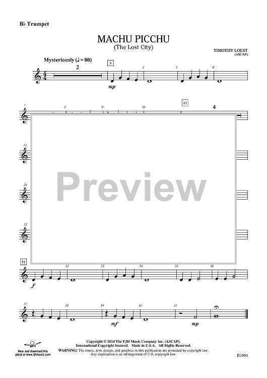 "Machu Picchu (The Lost City) - Bb Trumpet" Sheet Music by Timothy Loest