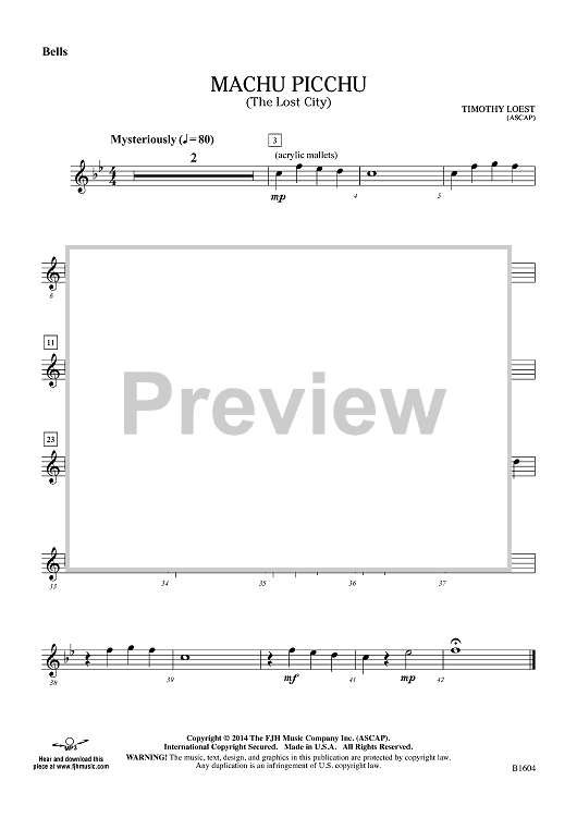 "Machu Picchu (The Lost City) - Bells" Sheet Music by Timothy Loest
