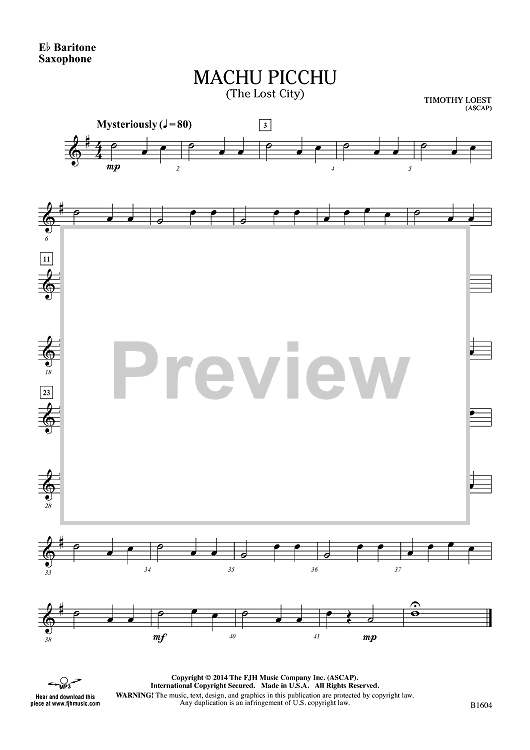 Digital Sheet Music for Machu Picchu (The Lost City) - Eb Baritone Sax by Timothy Loest scored for Concert Band; id:447686