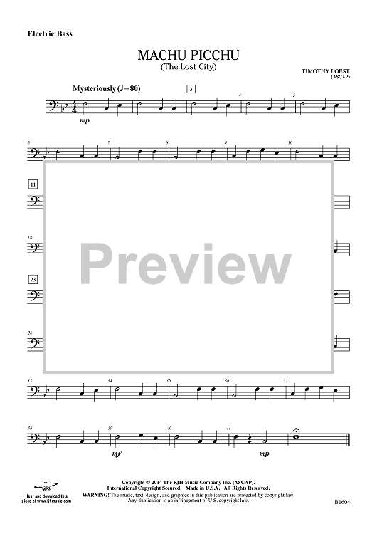 Digital Sheet Music for Machu Picchu (The Lost City) - Electric Bass by Timothy Loest scored for Concert Band; id:447694