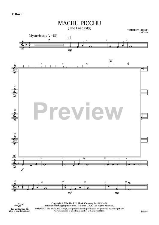 Digital Sheet Music for Machu Picchu (The Lost City) - F Horn by Timothy Loest scored for Concert Band; id:447688