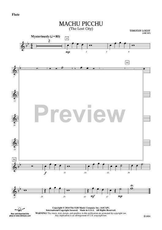 Digital Sheet Music for Machu Picchu (The Lost City) - Flute by Timothy Loest scored for Concert Band; id:447678