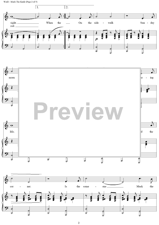 "Mack The Knife" Sheet Music by Kurt Weill