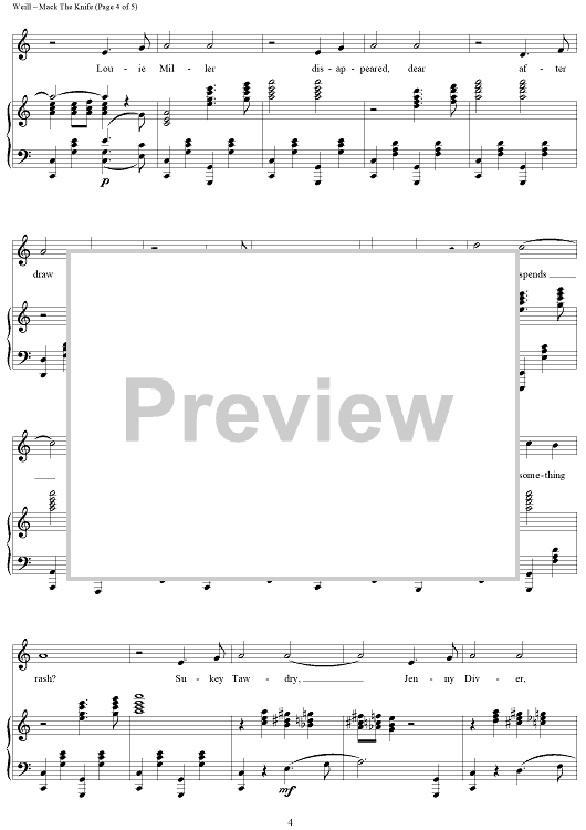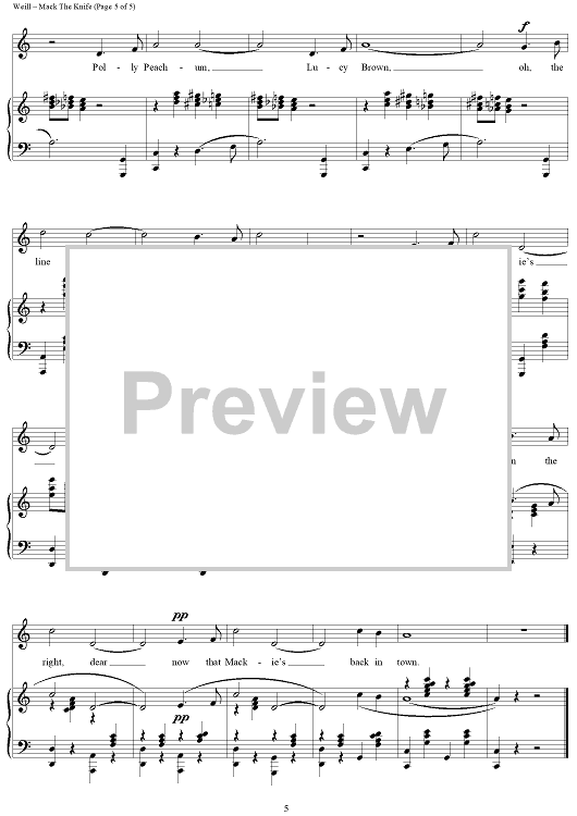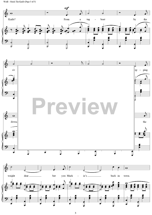 Digital Sheet Music for Mack The Knife by Marc Blitzstein, Bertolt Brecht, Kurt Weill scored for Piano/Vocal; id:454437