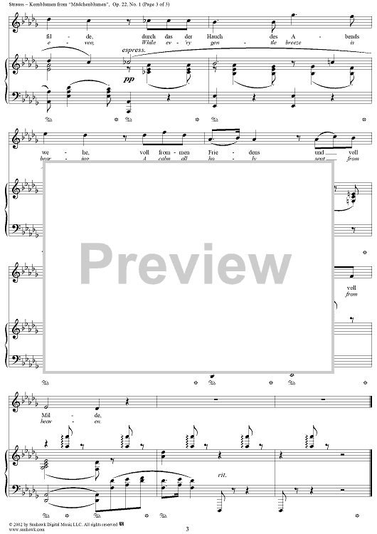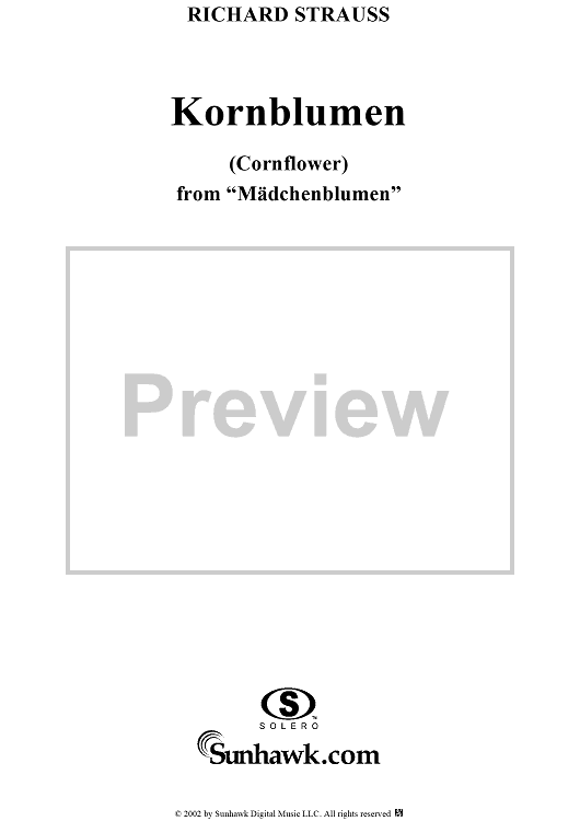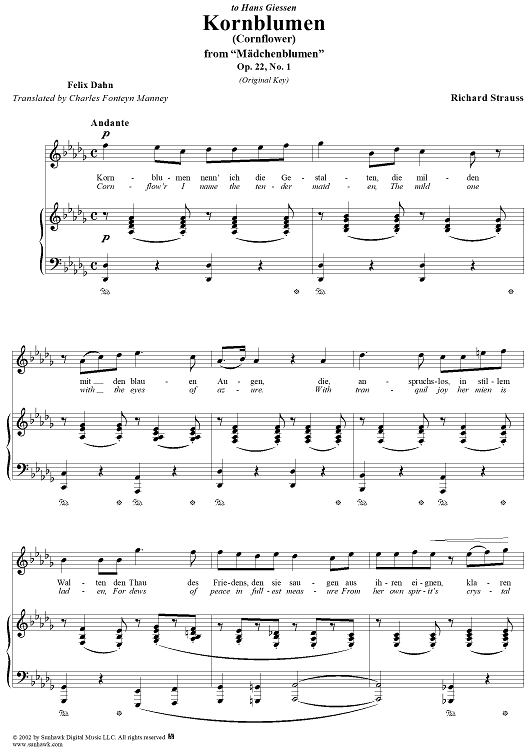 Digital Sheet Music for Mädchenblumen, Op. 22, No. 1: Kornblumen - No. 1 from "Mädchenblumen" Op. 22 by Richard Strauss, Felix Dahn scored for Voice/Piano; id:256081
