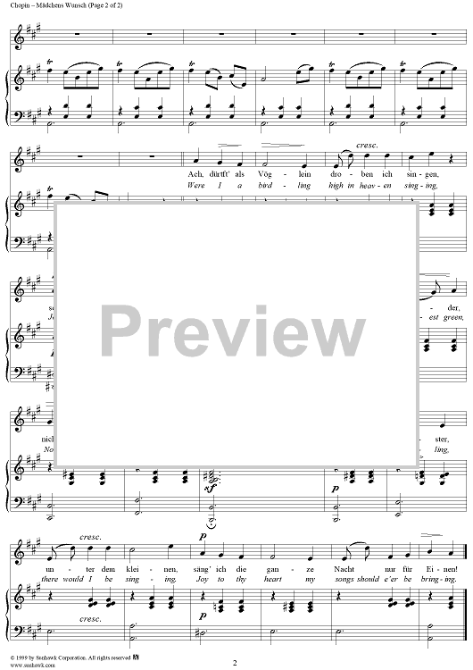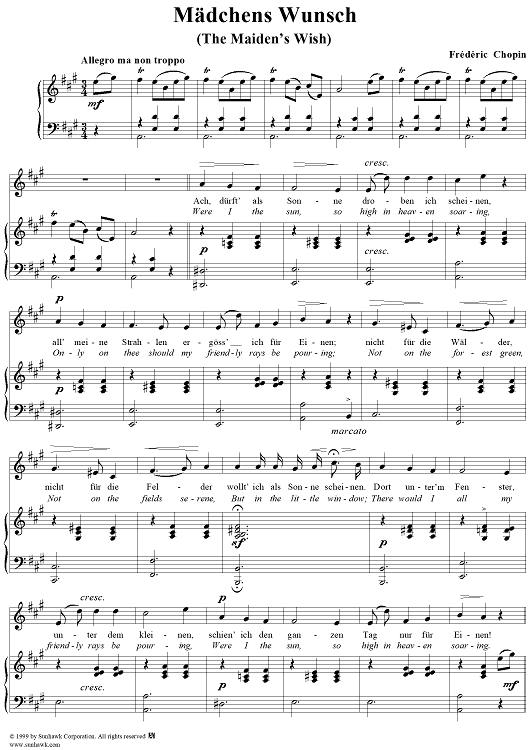 Digital Sheet Music for Mädchens Wunsch by Frederic Chopin, S. Witwicki scored for Voice/Piano; id:118160