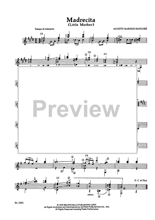 "Madrecita (Little Mother)" Sheet Music by Agustin Barrios Mangore