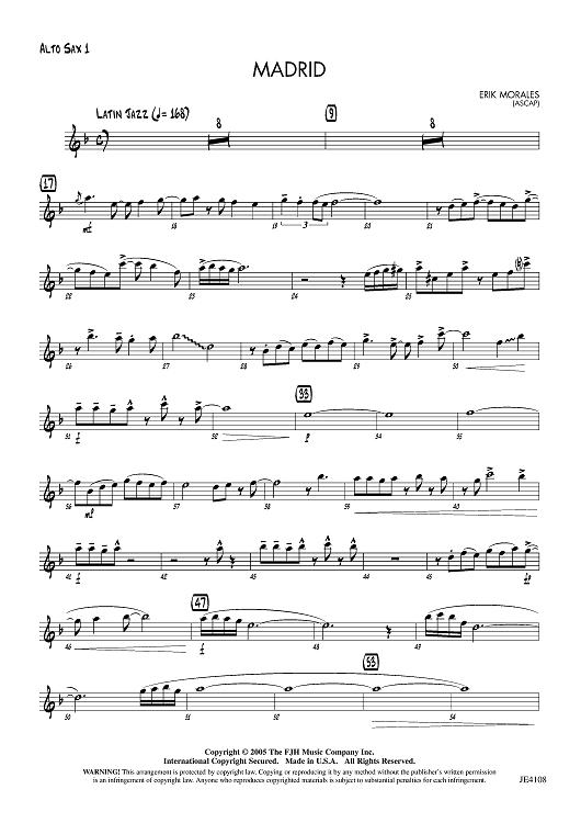 Digital Sheet Music for Madrid - Alto Sax 1 by Erik Morales scored for Jazz Ensemble; id:455952