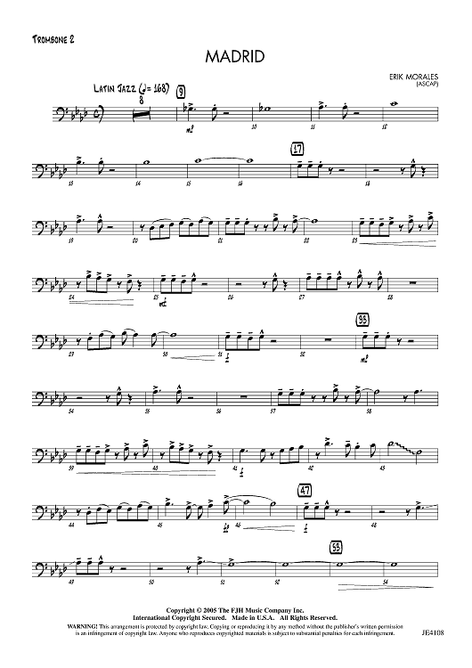 Digital Sheet Music for Madrid - Trombone 2 by Erik Morales scored for Jazz Ensemble; id:455962