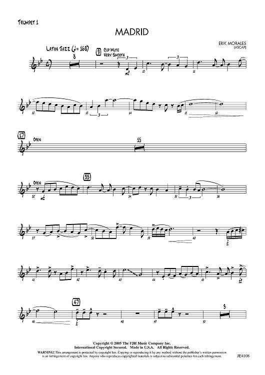 Digital Sheet Music for Madrid - Trumpet 1 by Erik Morales scored for Jazz Ensemble; id:455957