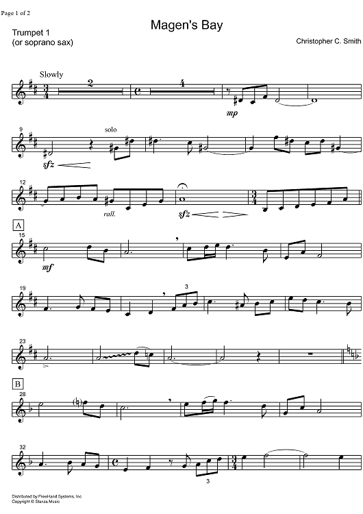 "Magen's Bay - Trumpet 1" Sheet Music by Christopher C. Smith