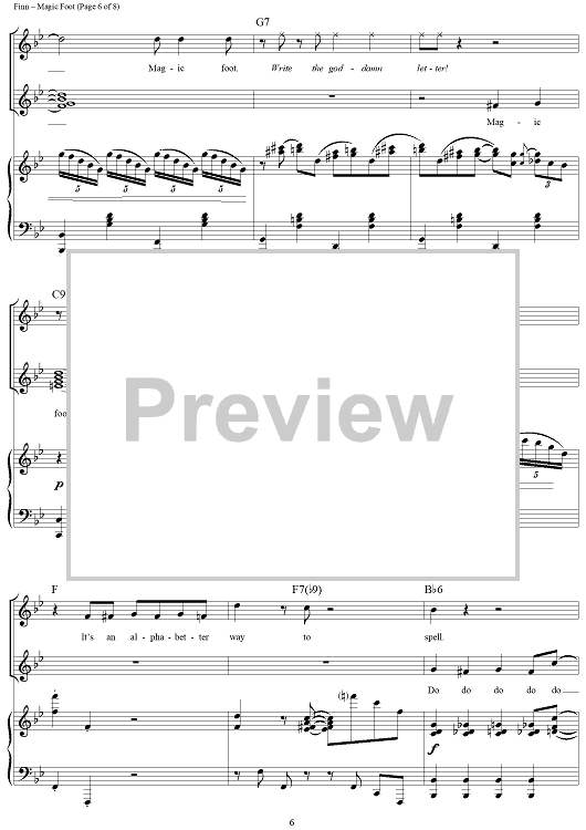 Digital Sheet Music for Magic Foot by William Finn scored for Piano/Vocal/Chords; id:317820