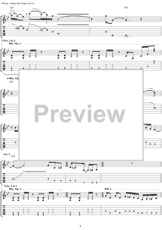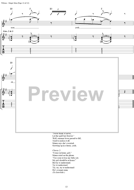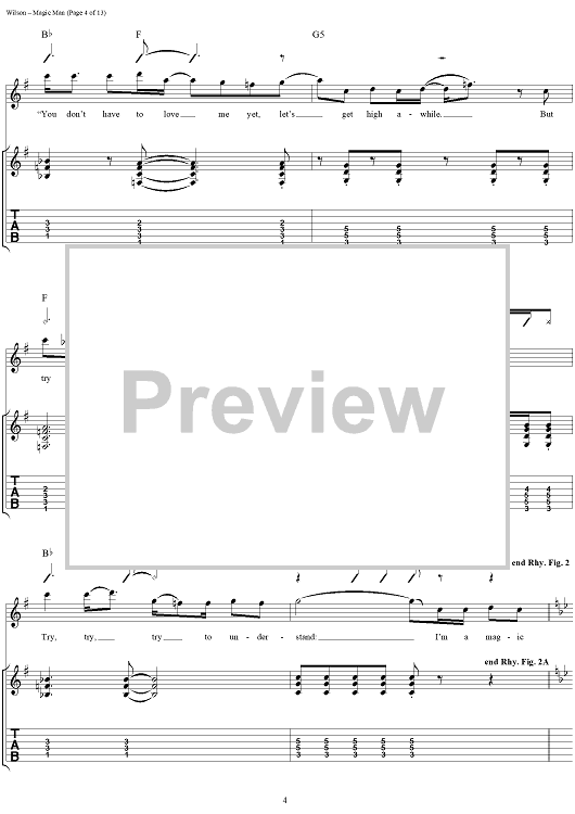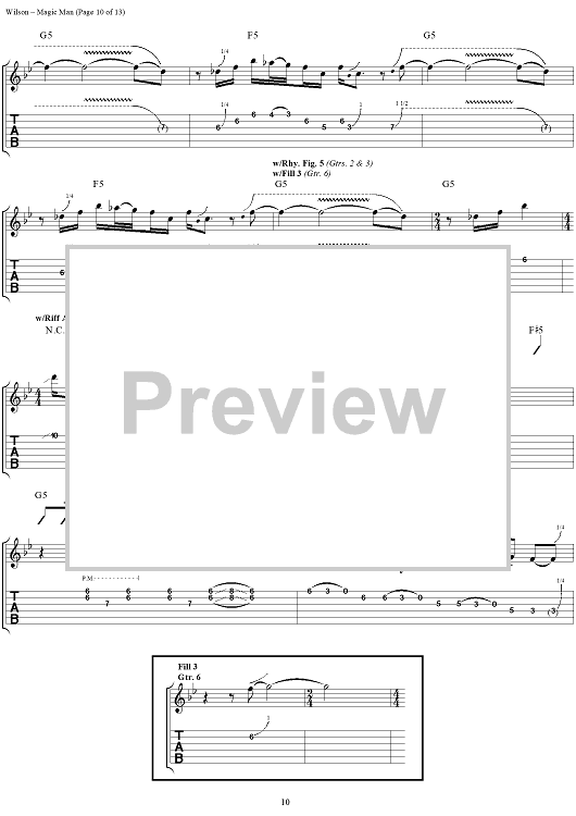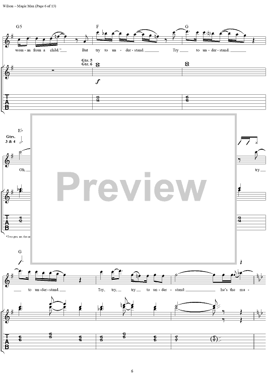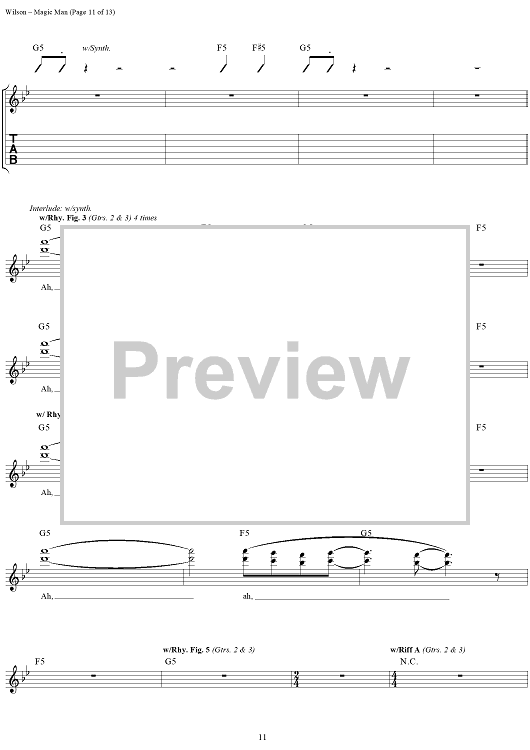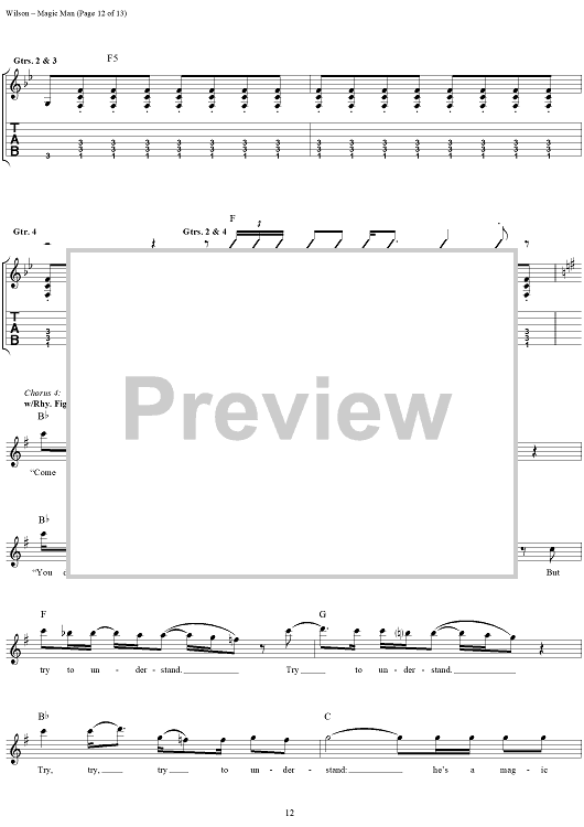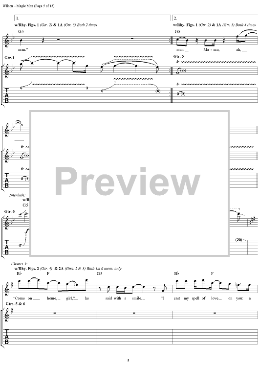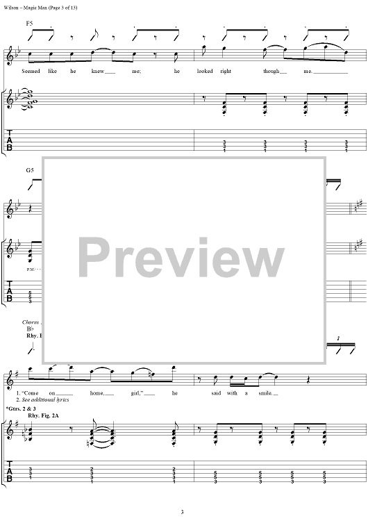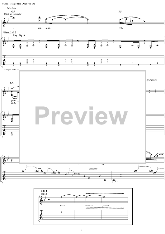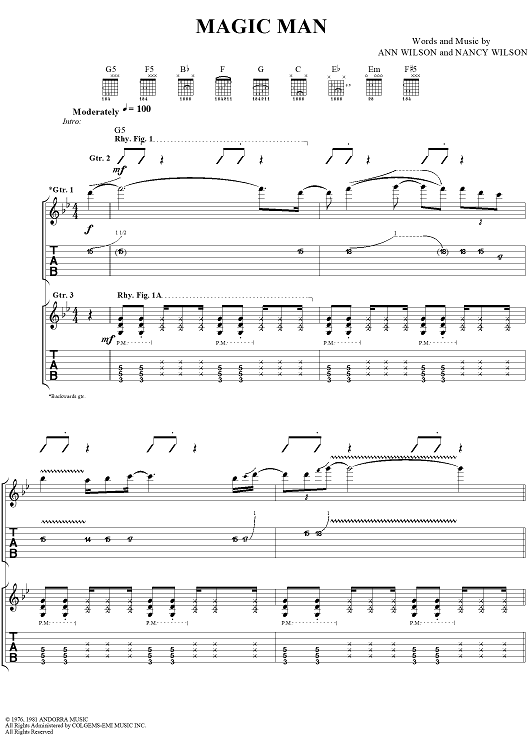 Digital Sheet Music for Magic Man by Heart, Ann Wilson, Nancy Wilson scored for Guitar Tab/Vocal; id:112733