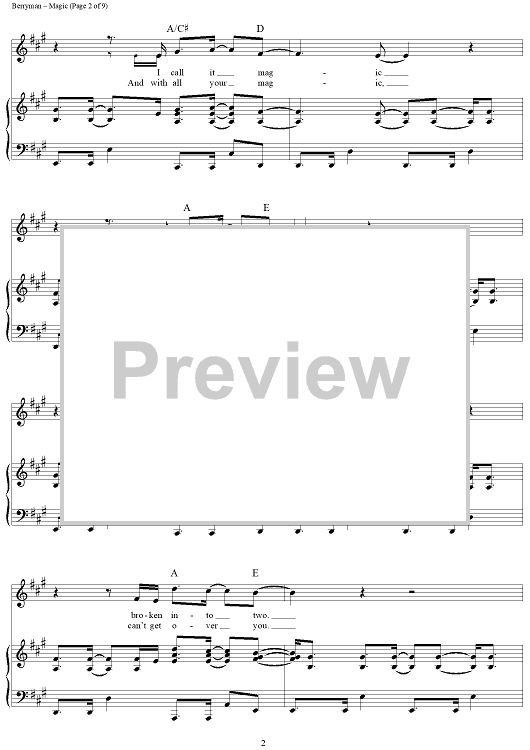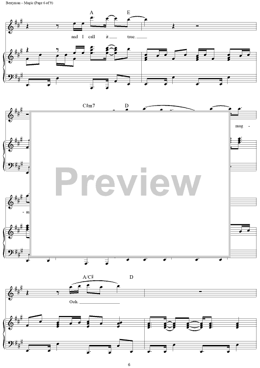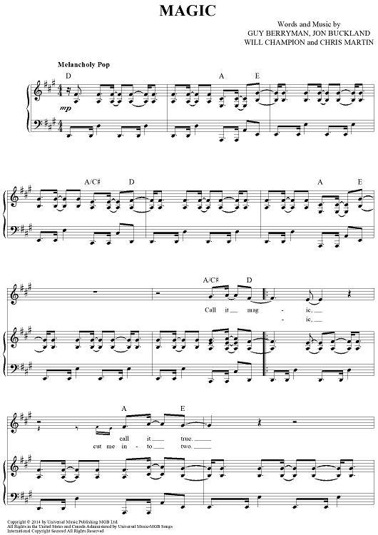 Digital Sheet Music for Magic by Chris Martin, Coldplay, Jonny Buckland scored for Piano/Vocal/Chords; id:441315