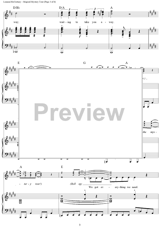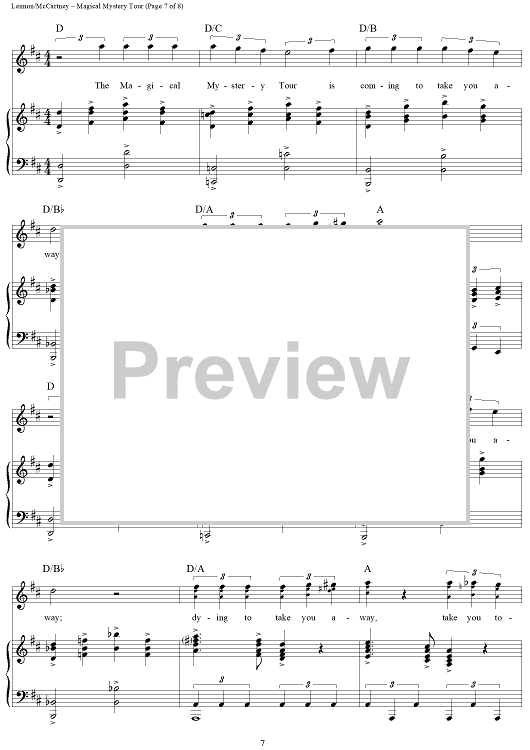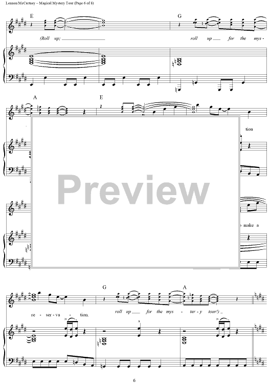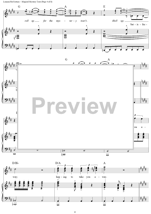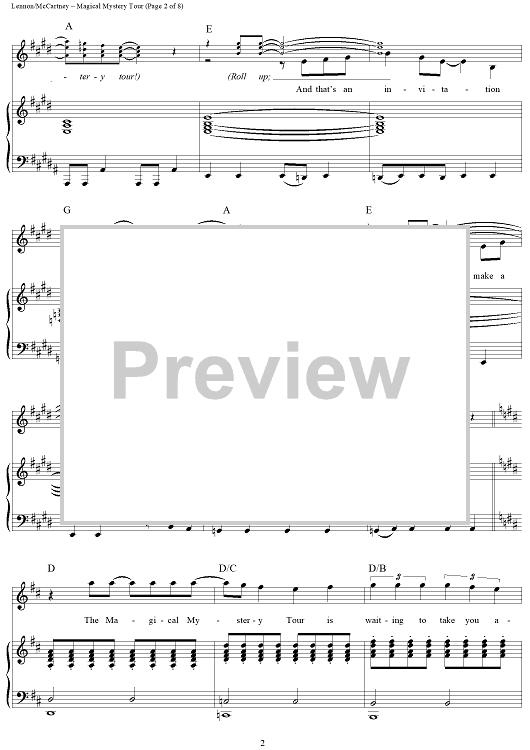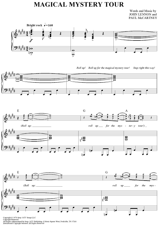 Digital Sheet Music for Magical Mystery Tour by Paul McCartney, The Beatles, John Lennon scored for Piano/Vocal/Chords; id:404289