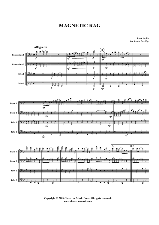 Digital Sheet Music for Magnetic Rag - Score by Scott Joplin, Lewis J. Buckley scored for Tuba Quartet; id:319956