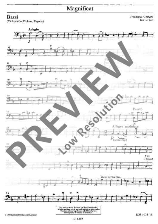 "Magnificat - Bassi" Sheet Music by Tomaso Albinoni