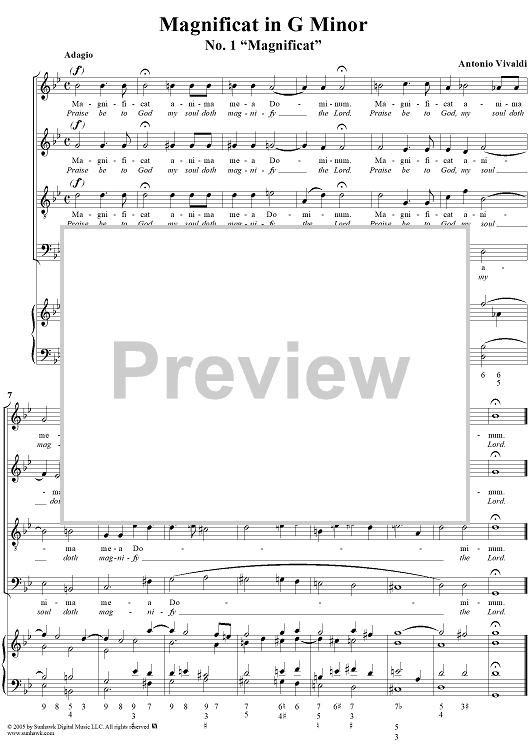 Digital Sheet Music for Magnificat in G Minor: No. 1 by Antonio Vivaldi scored for Four-part Mixed Chorus/Piano; id:304663