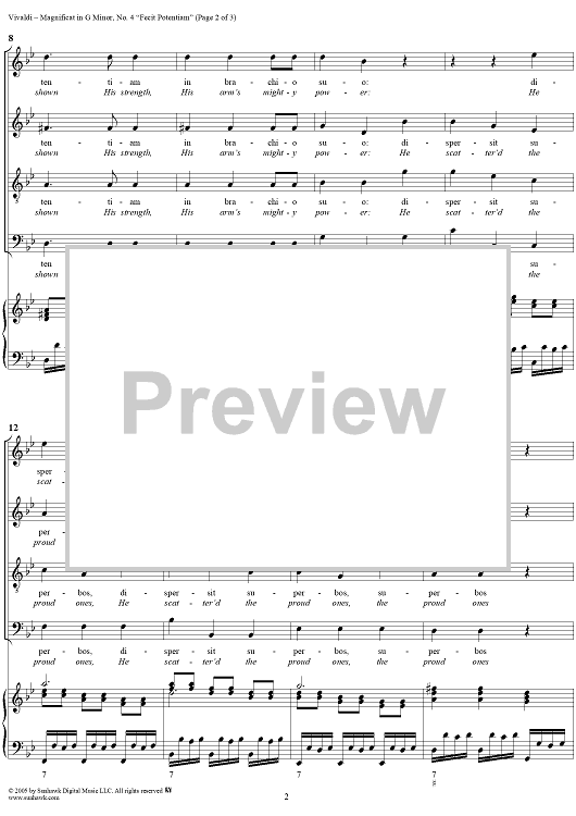 Digital Sheet Music for Magnificat in G Minor: No. 4, Fecit Potentiam by Antonio Vivaldi scored for Four-part Mixed Chorus/Piano; id:304666