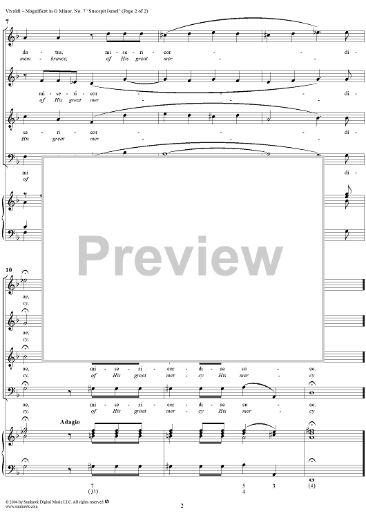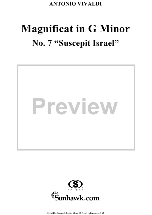Digital Sheet Music for Magnificat in G Minor: No. 7, Suscepit Israel by Antonio Vivaldi scored for Four-part Mixed Chorus/Piano; id:304669