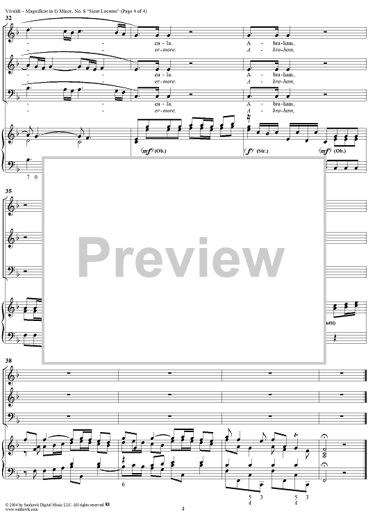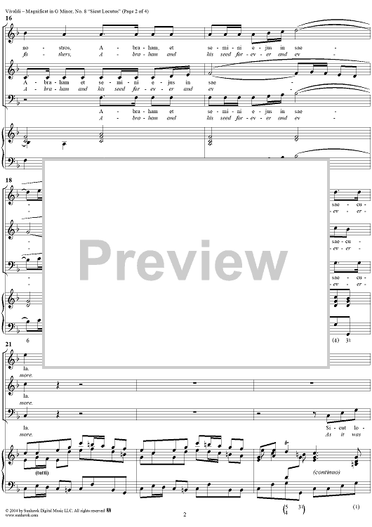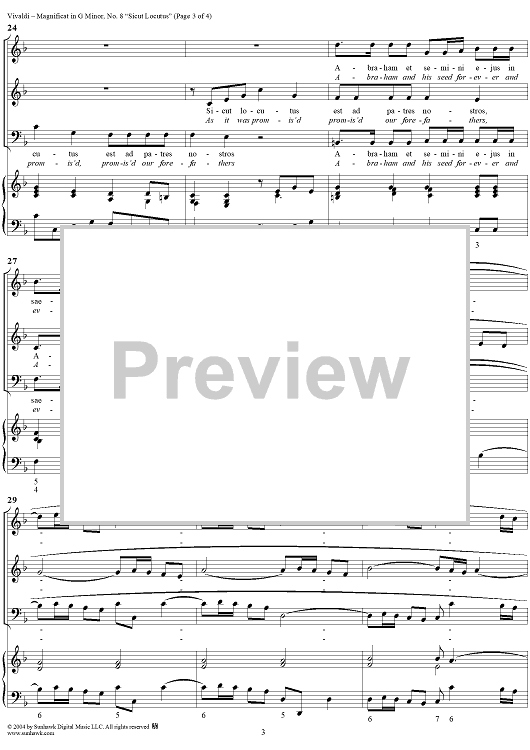 Digital Sheet Music for Magnificat in G Minor: No. 8, Sicut Locutus by Antonio Vivaldi scored for Four-part Mixed Chorus/Piano; id:304670