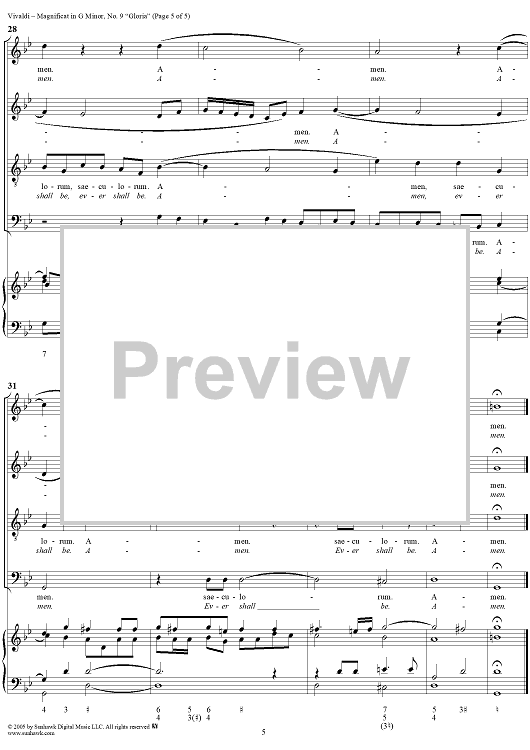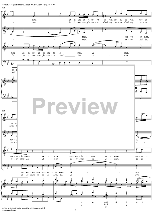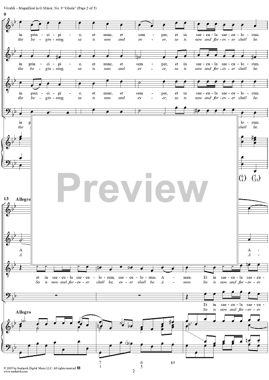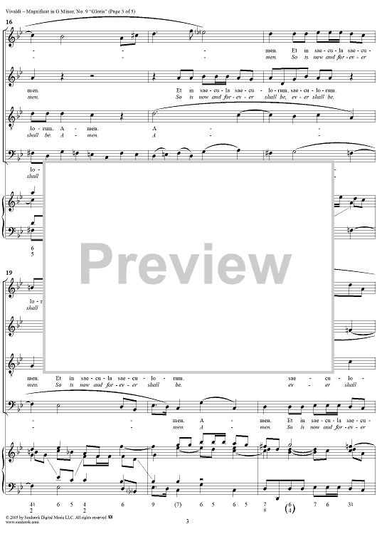 Digital Sheet Music for Magnificat in G Minor: No. 9, Gloria by Antonio Vivaldi scored for Four-part Mixed Chorus/Piano; id:304671