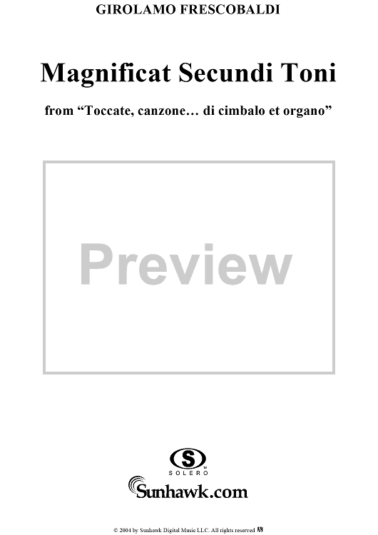 Digital Sheet Music for Magnificat Secundi Toni, No. 24 from "Toccate, canzone ... di cimbalo et organo", Vol. II by Girolamo Frescobaldi scored for Harpsichord or Organ; id:295964