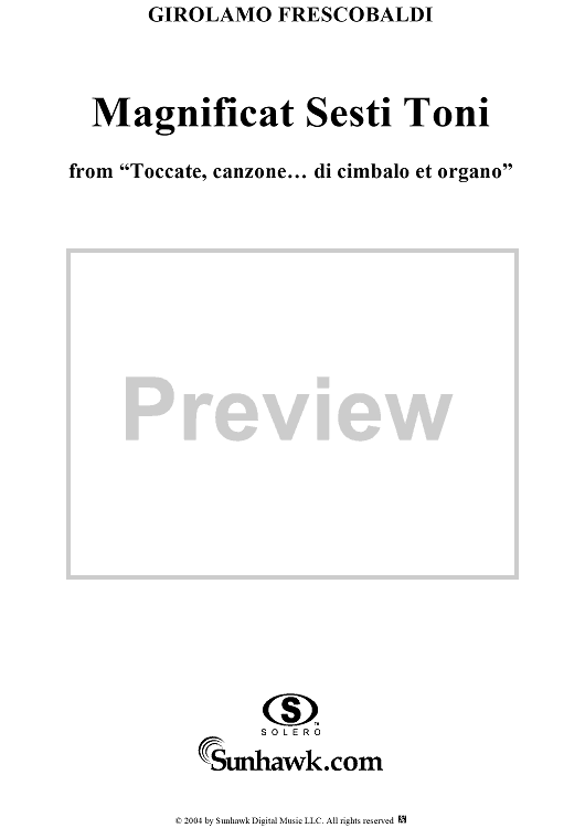Digital Sheet Music for Magnificat Sesti Toni, No. 25 from "Toccate, canzone ... di cimbalo et organo", Vol. II by Girolamo Frescobaldi scored for Harpsichord or Organ; id:295965