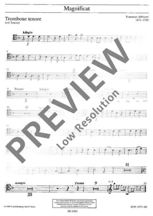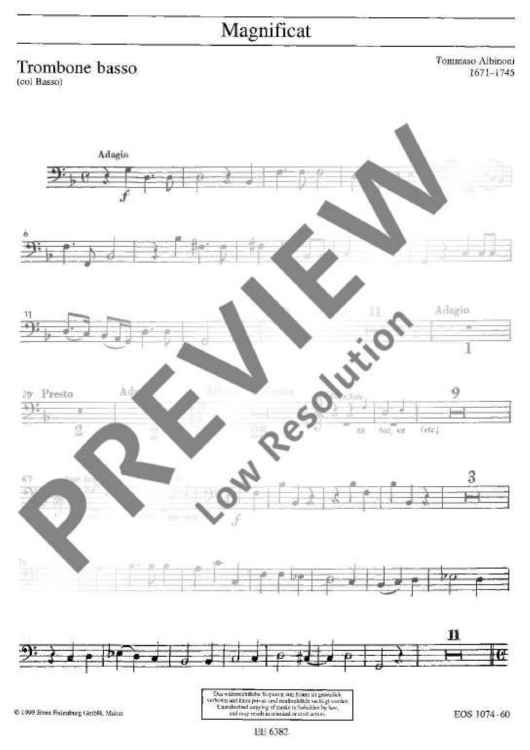 "Magnificat - Set of Parts" Sheet Music by Tomaso Albinoni