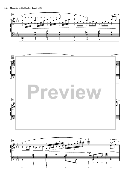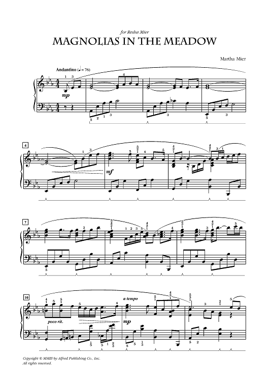 Digital Sheet Music for Magnolias In The Meadow by Martha Mier scored for Piano; id:462691