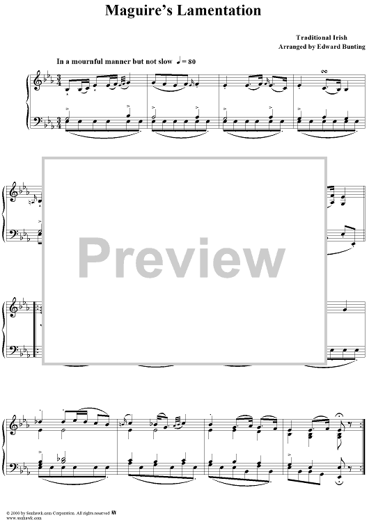Digital Sheet Music for Maguire's Lamentation by , Edward Bunting, Traditional scored for Piano Solo; id:234684