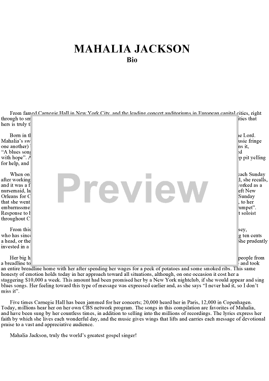 Digital Sheet Music for Mahalia Jackson - Bio by scored for Piano/Vocal/Chords; id:356042
