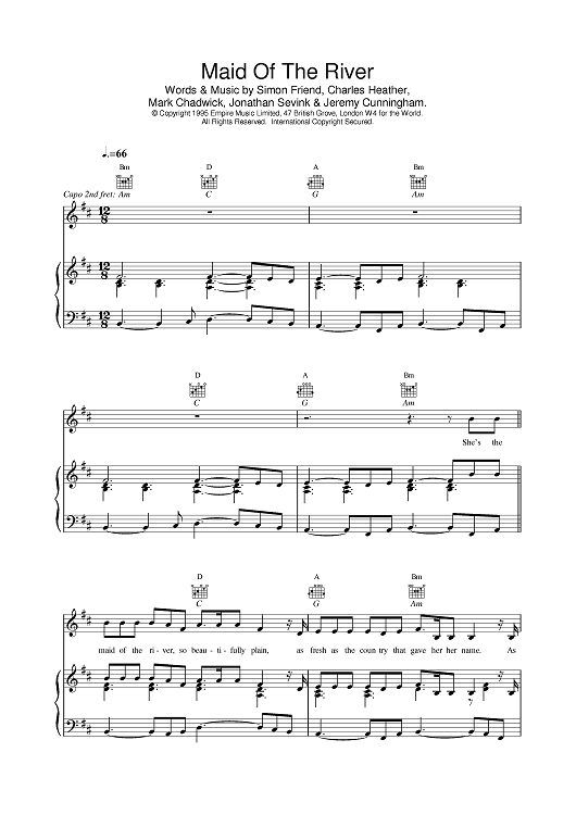 Digital Sheet Music for Maid Of The River by The Levellers scored for Piano/Vocal/Chords; id:376243