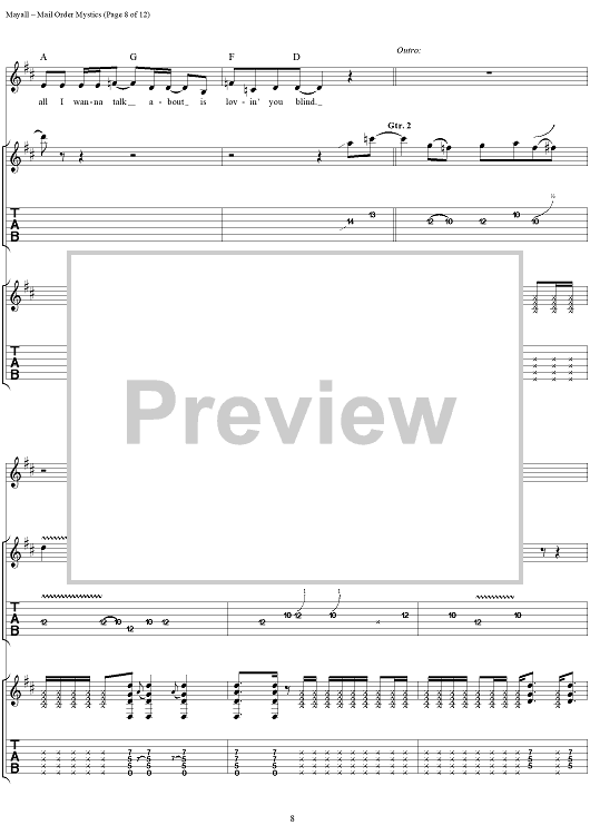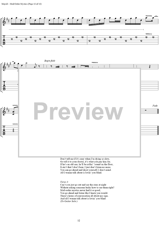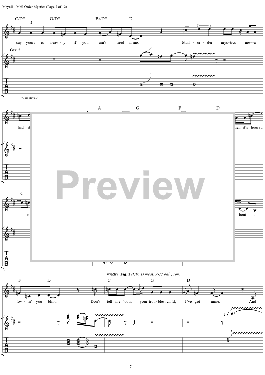 Digital Sheet Music for Mail Order Mystics by John Mayall scored for Guitar Tab/Vocal; id:120767