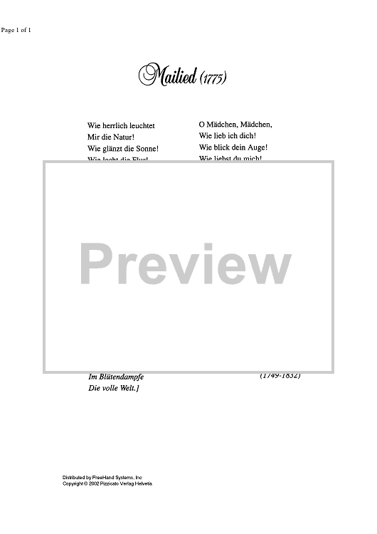 "Mailied - Lyrics" Sheet Music by Riccardo Fabris