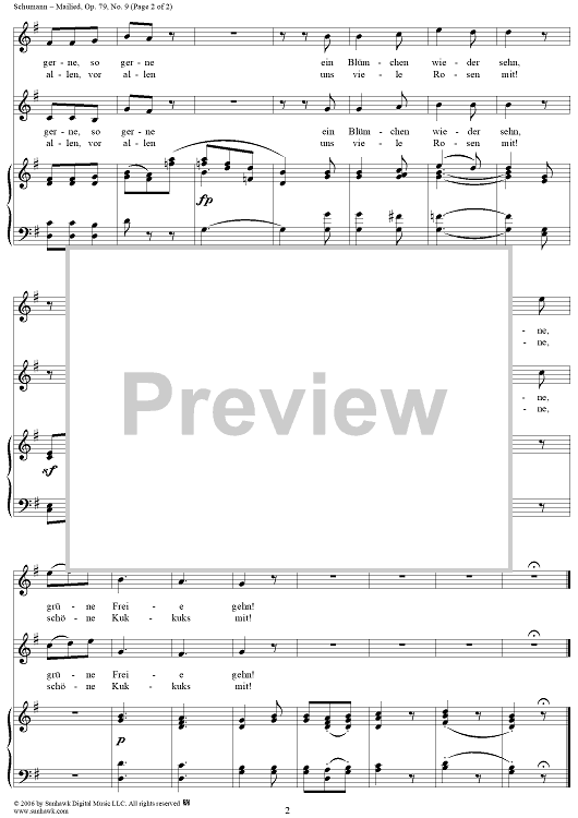 Digital Sheet Music for Mailied, No. 9, Op. 79 by Robert Schumann scored for Voice/Piano; id:318345