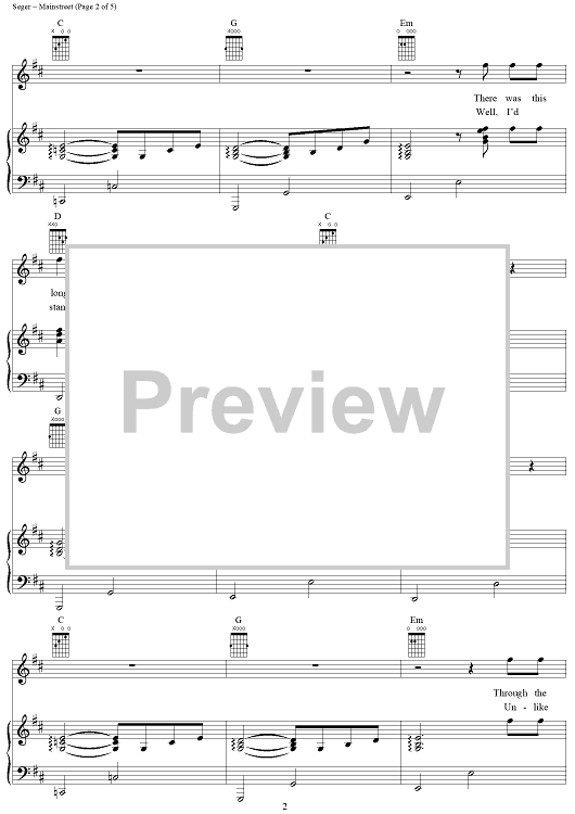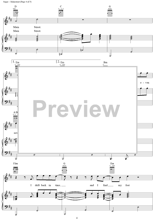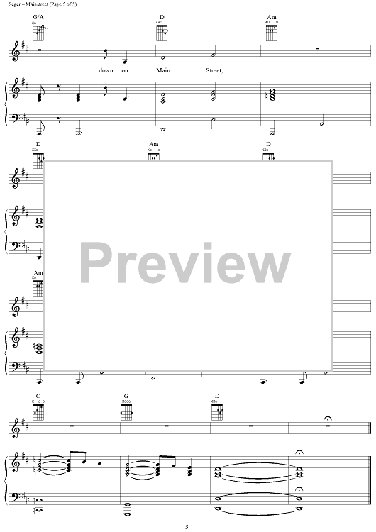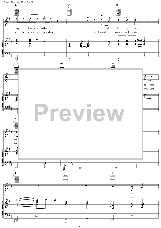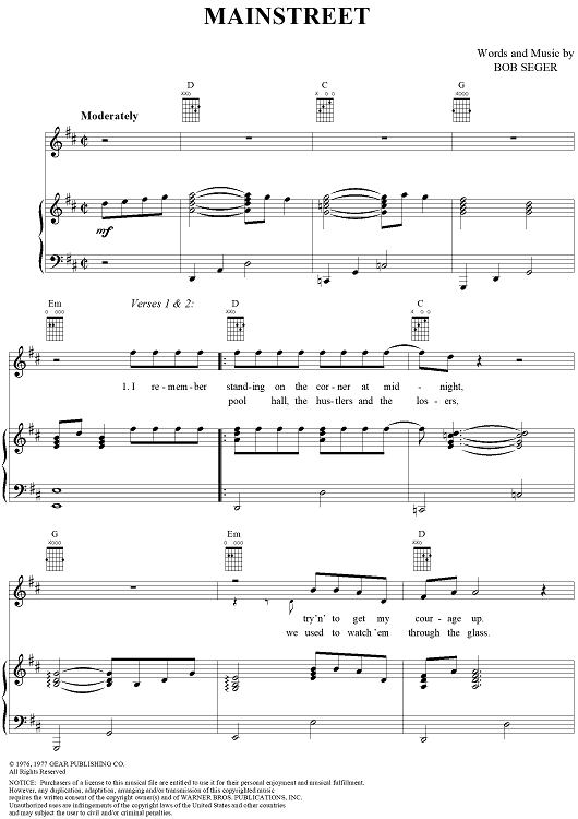 Digital Sheet Music for Mainstreet by Bob Seger scored for Piano/Vocal/Chords; id:240728