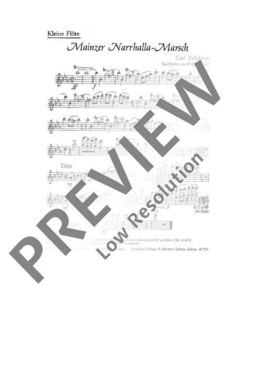 "Mainzer Narrhalla-Marsch - Piccolo" Sheet Music by Carl Zulehner