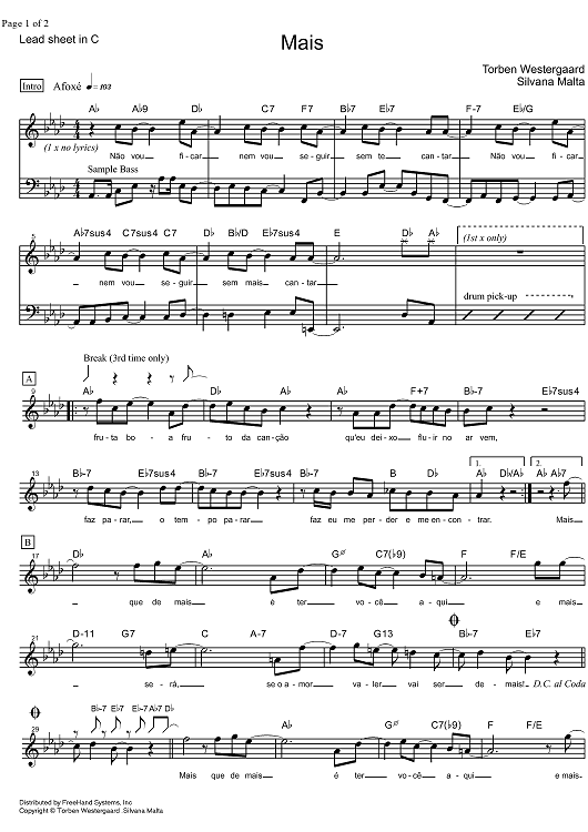 Digital Sheet Music for Mais by Silvana Malta, Torben Westergaard scored for Voice; id:326369