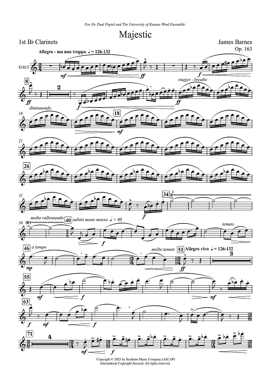 Digital Sheet Music for Majestic - 1st Bb Clarinets by James Barnes scored for Symphonic Band; id:508129