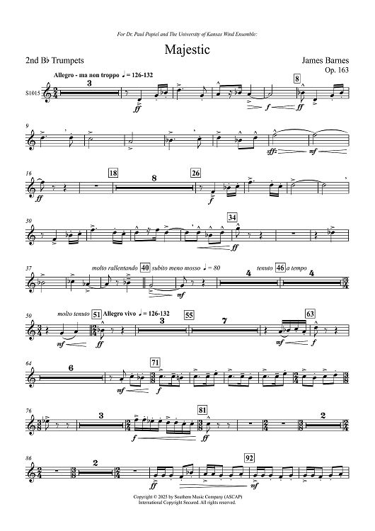 "Majestic - 2nd Bb Trumpets" Sheet Music by James Barnes