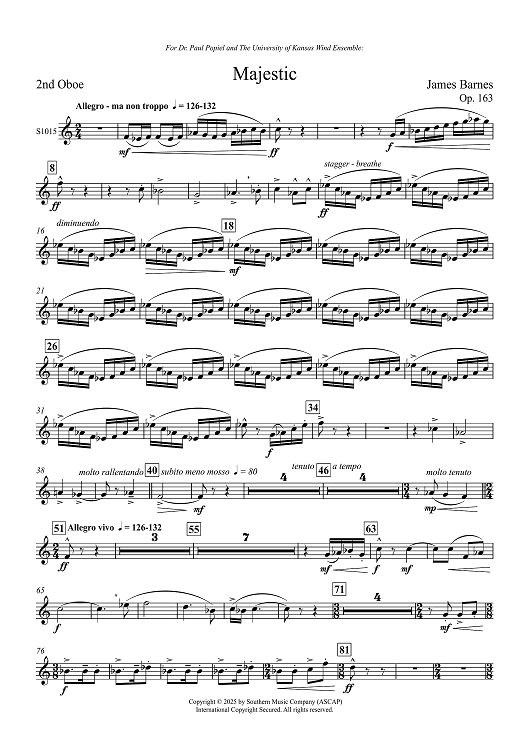 Digital Sheet Music for Majestic - 2nd Oboe by James Barnes scored for Symphonic Band; id:508126