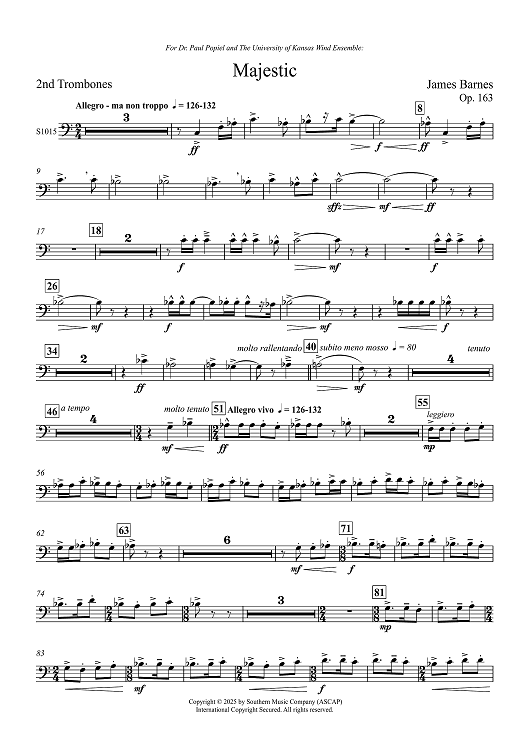 Digital Sheet Music for Majestic - 2nd Trombones by James Barnes scored for Symphonic Band; id:508150