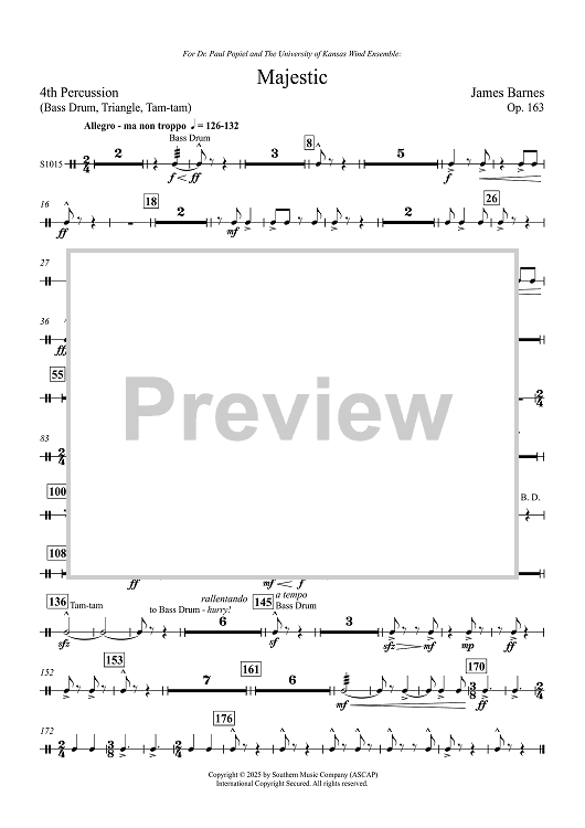 Digital Sheet Music for Majestic - 4th Percussion by James Barnes scored for Symphonic Band; id:508161