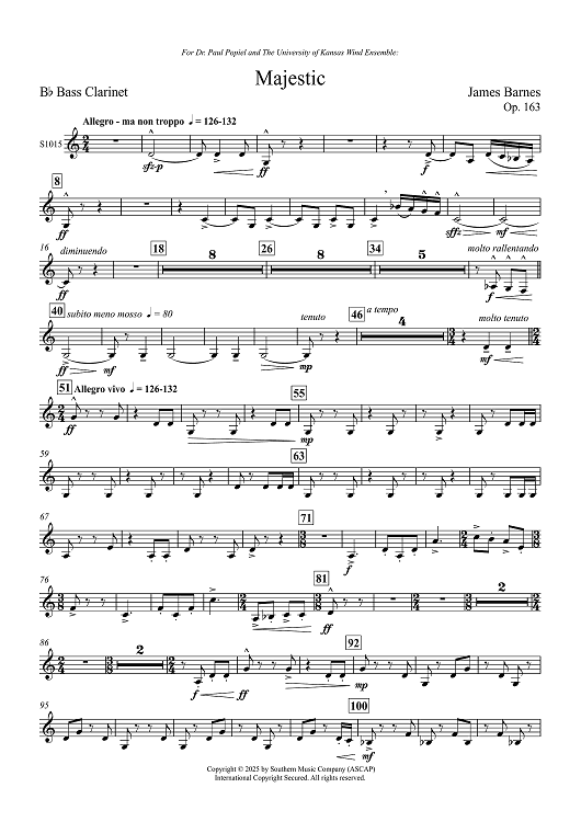Digital Sheet Music for Majestic - Bb Bass Clarinet by James Barnes scored for Symphonic Band; id:508133