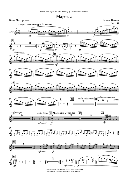 Digital Sheet Music for Majestic - Bb Tenor Saxophone by James Barnes scored for Symphonic Band; id:508137